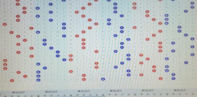 二、我们把上面的号码分别合上:金:4尾和9尾号码-04、14、24、09、19、29。木:3尾和8尾号码-03、13、23、33、08、18、28。水:1尾和6尾-01、11、21、31、06、16、26。火:2尾和7尾-02、12、22、32、07、17、27。土:5尾和0尾-05、15、25、10、20、30。