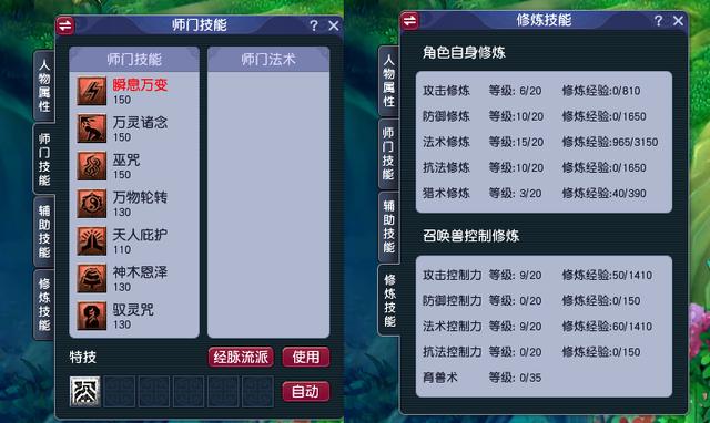 现在这个号只有3个技能达到了150级,人修总共才44,法修只有15。宠修是攻击控制力和法术控制力9,合计18。整号距离渡劫还遥遥无期。