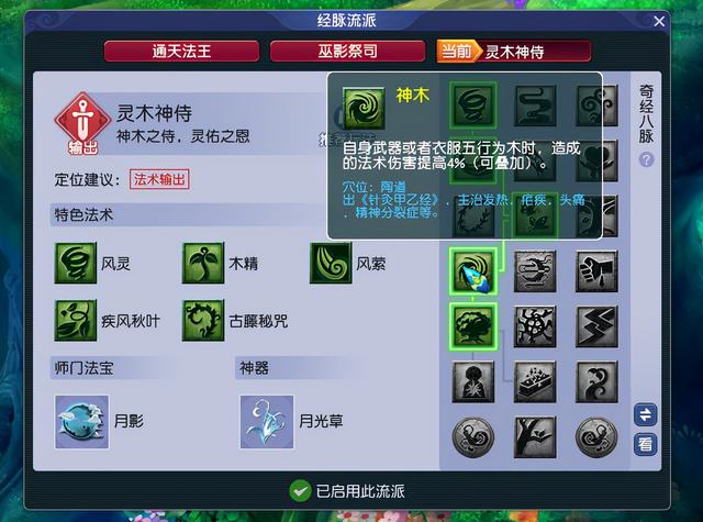 而对于师门技能不达标,巫咒技能没有大于等级,无法触发经脉第二丹咒法的玩家来说,经脉流派建议选神木灵侍。